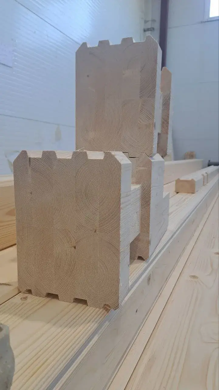После склейки брус проходит фрезеровку замковой системы «гребень-паз».