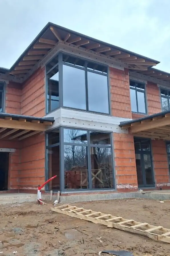 Наружных стен (380 мм), внутренних несущих (250 мм) и перегородок (120 мм) из блоков Porotherm на специальный кладочный раствор. Кладка вентшахт и парапетов из кирпича