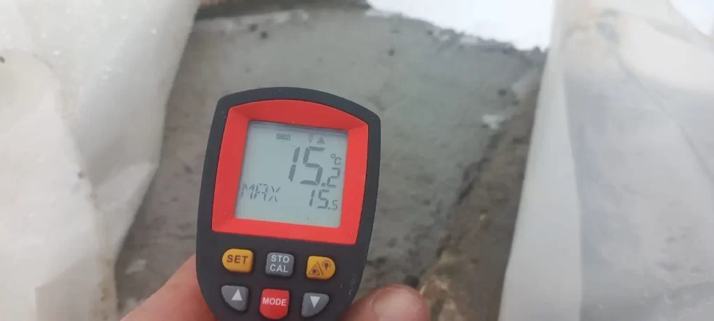- Качественная подготовка: тщательно очищаем и прогреваем основание и арматуру, чтобы заливка происходила не на мерзлый грунт